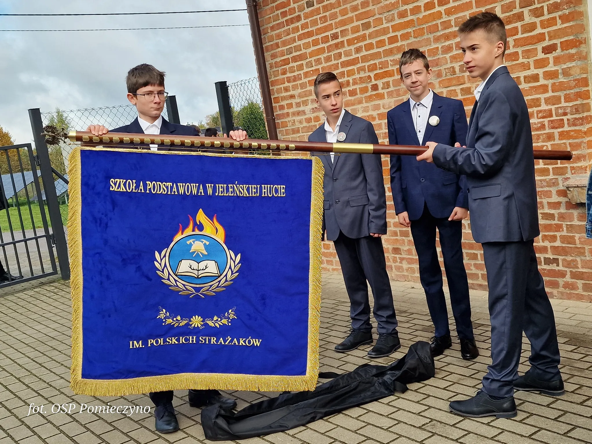 Kluczowym momentem było przekazanie szkole sztandaru. Został on ufundowany dzięki mobilizacji i solidarności: przez mieszkańców, strażaków z lokalnych OSP, zaprzyjaźnionych jednostek OSP, a także Państwową Straż Pożarną (PSP). Sztandar ten jest teraz trwałym symbolem więzi między szkołą a lokalnymi służbami ratowniczymi.