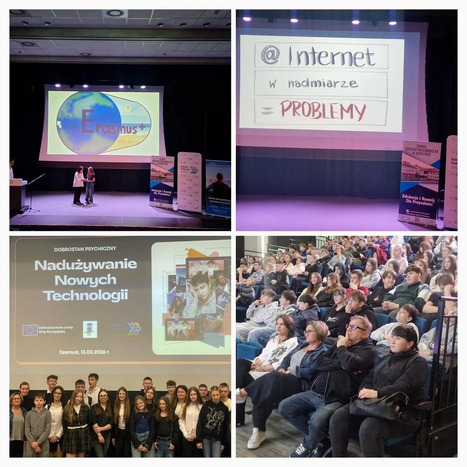 W piątek, 13 marca, Centrum Samorządowe w Szemudzie stało się przestrzenią ważnej debaty o zdrowiu psychicznym i technologii. Uczniowie klas VII–VIII Zespołu Szkolno-Przedszkolnego w Szemudzie wzięli udział w spotkaniu poświęconym dobrostanowi cyfrowemu, realizowanemu w ramach programu Erasmus+.