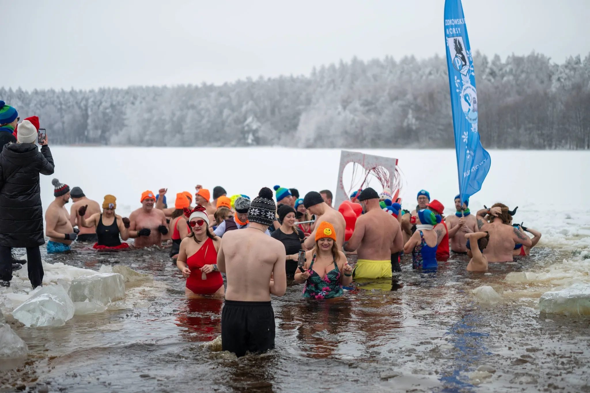 Po wyjściu z wody na morsów i kibiców czekały gorące posiłki i wyjątkowa atmosfera. Wspólne chwile przy ognisku umilała ciepła herbata, pożywna zupa oraz tematyczne, walentynkowe ciasto przygotowane specjalnie na tę okazję przez Koło Gospodyń Wiejskich Kaszubski Kamień.