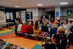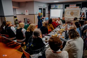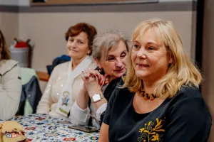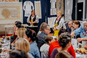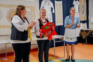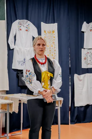 Goście mieli również okazję wysłuchać fascynujących prelekcji. Etnograf Benita Grzenkowicz-Ropela z Muzeum Piśmiennictwa i Muzyki Kaszubsko-Pomorskiej w Wejherowie przybliżyła historyczny kontekst i symbolikę kaszubskiego haftu, dzieląc się ciekawostkami i „prawdziwymi historiami” tego rzemiosła. Pani Benita podkreśliła również znaczenie haftu jako elementu budującego wspólnotę wśród kobiet oraz jego fundamentalną rolę w określaniu kaszubskiej etniczności – zaraz obok języka. Zaznaczyła, że jest to czołowe rękodzieło Pomorza.