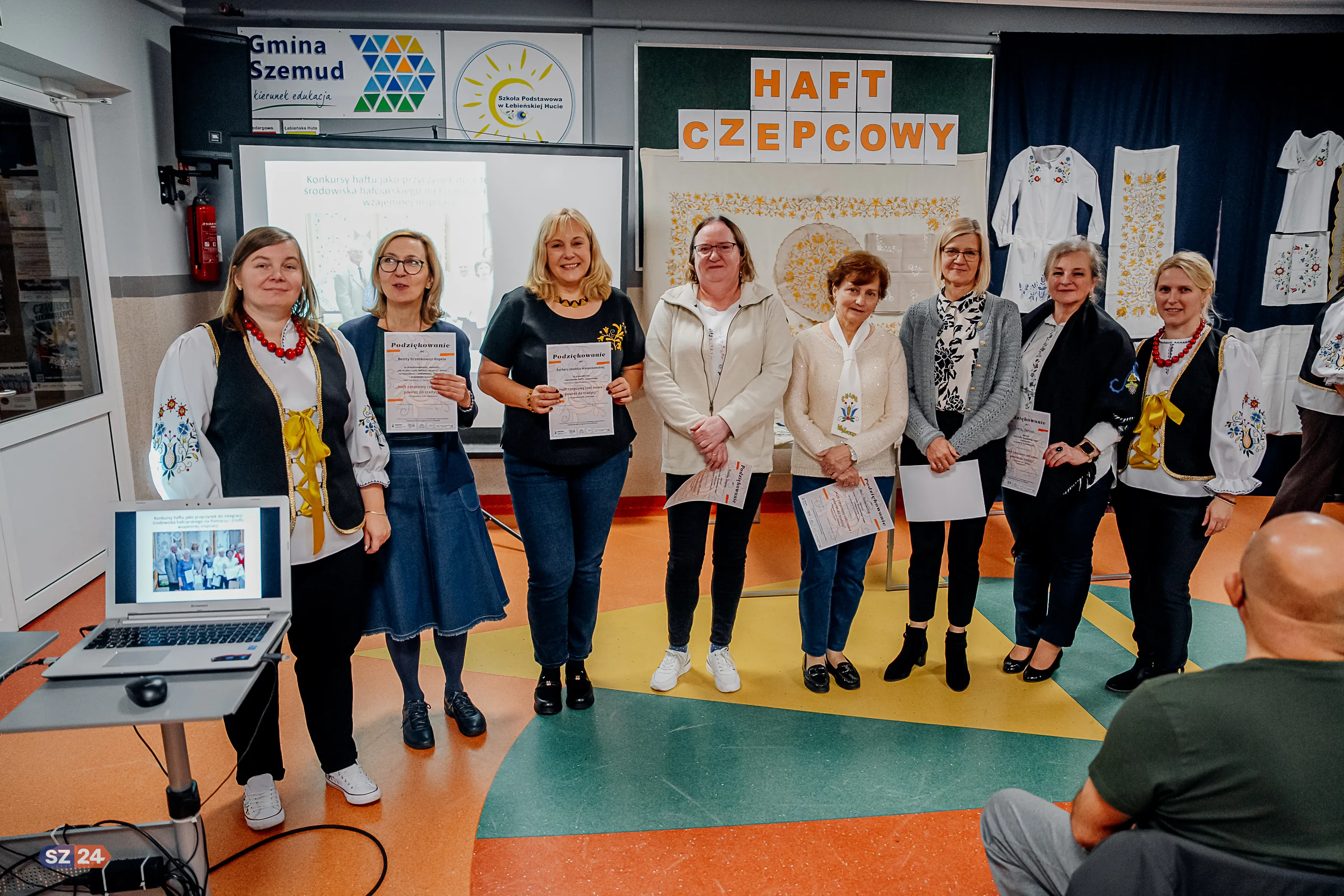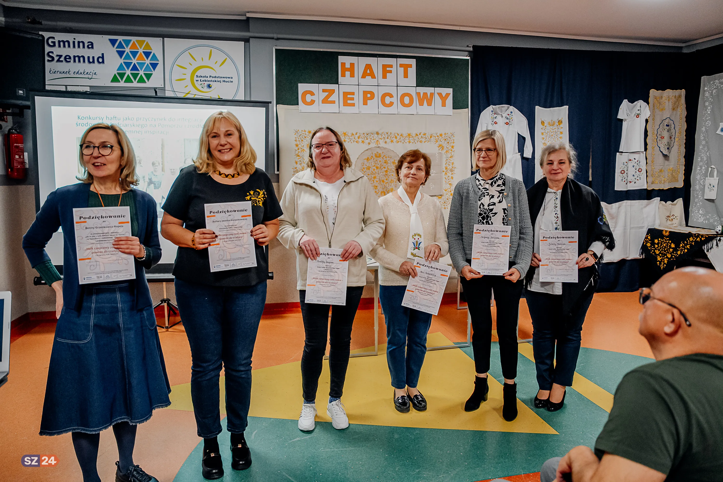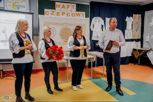 Wczoraj, 27 października w Szkole Podstawowej w Łebieńskiej Hucie Koło Gospodyń Wiejskich w Będargowie „Trzy Korony” uroczyście zakończyło swój projekt „Haft czepcowy (od)nowa – powrót do tradycji” otwartą wystawą swoich prac która, zgromadziła szeroką publiczność, w tym mieszkańców oraz sołtysów różnych sołectw Gminy Szemud, Wójta Gminy Szemud Ryszarda Kalkowskiego oraz członkinie Klubu Haftu Kaszubskiego „Tulpa” z Wejherowa.