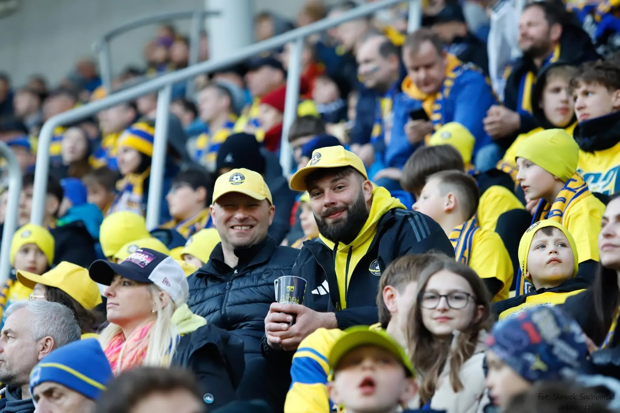 Młodzi sportowcy z Koleczkowa byli doskonale widoczni na całym stadionie dzięki dedykowanym koszulkom i szalikom, które otrzymali specjalnie na tę okazję.