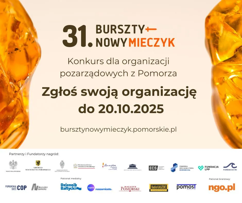 Ruszyła 31. edycja prestiżowego Konkursu o Nagrody Bursztynowego Mieczyka im. Macieja Płażyńskiego. To kluczowy moment dla organizacji pozarządowych, by zaprezentować swoją działalność, wzmocnić prestiż i powalczyć o nagrody finansowe o wartości minimum 8 tysięcy złotych! Konkurs organizowany przez Regionalne Centrum Informacji i Wspomagania Organizacji Pozarządowych ma na celu docenienie najbardziej aktywnych podmiotów działających na rzecz społeczności lokalnej. To wyjątkowa szansa na zdobycie znaczących środków na dalszą działalność.